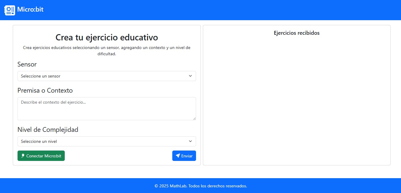 Herramienta educativa que usa sensores de Micro:bit para capturar información del entorno (temperatura, inclinación, orientación, etcétera) y transformarla en ejercicios matemáticos.